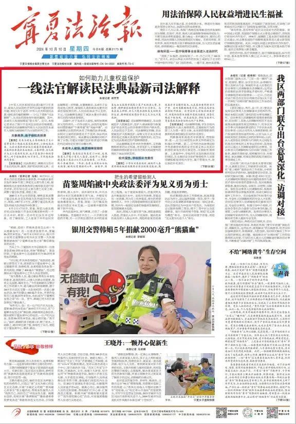 《中华人民共和国民法典》施行3年多后,最高人民法院结合审判实践中遇到的新问题,制定《关于适用〈中华人民共和国民法典〉侵权责任编的解释(一)》(以下简称“司法解释”),从司法的视角弥补规则漏洞。其中,未成年人权益保障是“重头戏”。近日,记者采访了银川市金凤区法院法官杨晴雯,听她讲述司法解释如何助力人民法院在未成年人侵权与被侵权行为方面的审判工作。