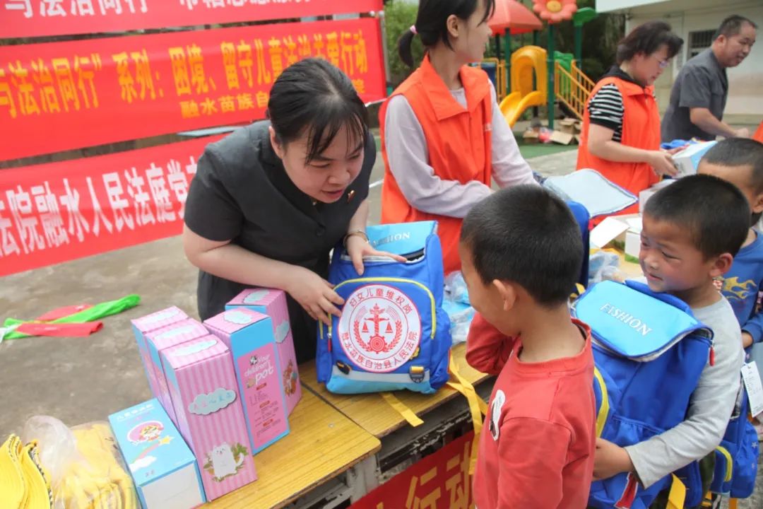 此外,融水法院还通过建立普法志愿服务队,联合炭火协会等志愿者力量,共同开展“法官妈妈为我上堂课”“情感线连线、心连心”等活动,鼓励妇女儿童乐观面对生活,利用“儿童节”“三八节”“中秋节”等节日分别为结对帮扶村的留守儿童、贫困妇女送去学习、生活用品,传递司法温暖。
