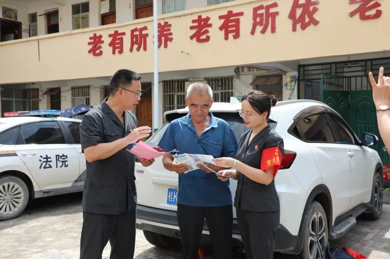 针对农村留守老年人较多,农村老年人消息闭塞、辨识能力差、法律知识薄弱、防范意识不强等特点,6月22日,陆川法院组织干警将防范养老诈骗宣传带进村屯。