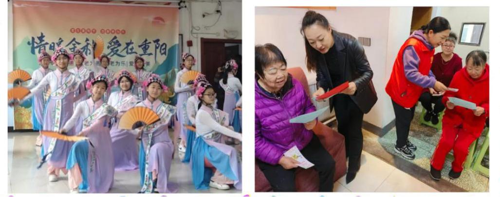 北安市妇联联合北安市女企业家协会、北安市电商协会走进瑜璟康养中心与老人们共度重阳节。巾帼志愿者们带来了瑜璟歌曲、少儿舞蹈、诗朗诵等节目,演出在《我和我的祖国》的歌声中落下帷幕。随后,志愿者与老人话家常聊近况,详细询问老人的身体情况,叮嘱他们要保持身心愉悦,并为每一位老人送上节日慰问品,让其充分感受到“娘家人”的关心关爱。