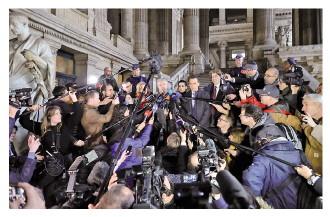 2022年年底欧洲议会深陷腐败丑闻。图为2022年12月22日,比利时布鲁塞尔,多家媒体争相就贪腐丑闻采访欧洲议会副议长伊娃·卡莉的律师。人民视觉 供图