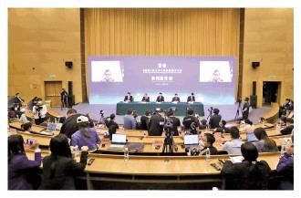 图为2022年11月6日,在湖北武汉拍摄的《湿地公约》第十四届缔约方大会新闻发布会现场。 新华社记者 姚琪琳 摄