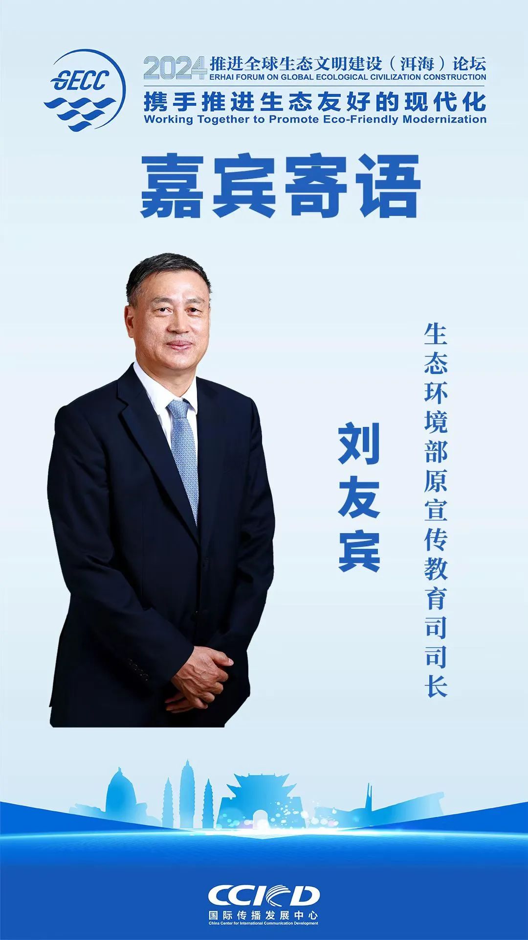 刘友宾:生态文明建设关乎人类未来,建设绿色家园是人类的共同梦想,保护生态环境需要世界各国同舟共济、共同努力。当前,我国生态环境保护从理论到实践都发生了历史性变化,已经成为全球生态文明建设的重要参与者、贡献者和引领者。本届洱海论坛的主题是“携手推进生态友好的现代化”。这个主题非常好,契合美丽中国建设的根本任务,也是国际社会高度关注的话题。期待论坛深入总结我国生态文明国际传播实践,研讨生态文明国际传播规律,指导做好新形势下生态文明国际传播,在增强我国在全球环境治理体系中的话语权和影响力,推动共谋全球生态文明建设、共建清洁美丽世界方面作出独特的贡献。