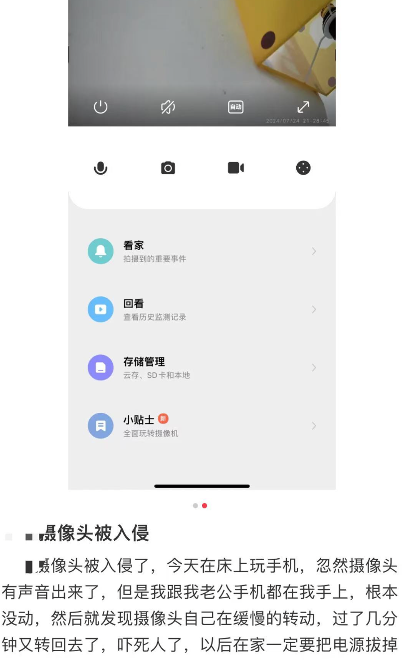 近日,网友莫女士(化名)向读特新闻记者报料称,自己家里的摄像头在无人操控时突然转动,这让她感到不安。读特新闻记者梳理发现,各大社交平台上,有不少关于家用摄像头“自行转动”“发出陌生人声音”等讨论。