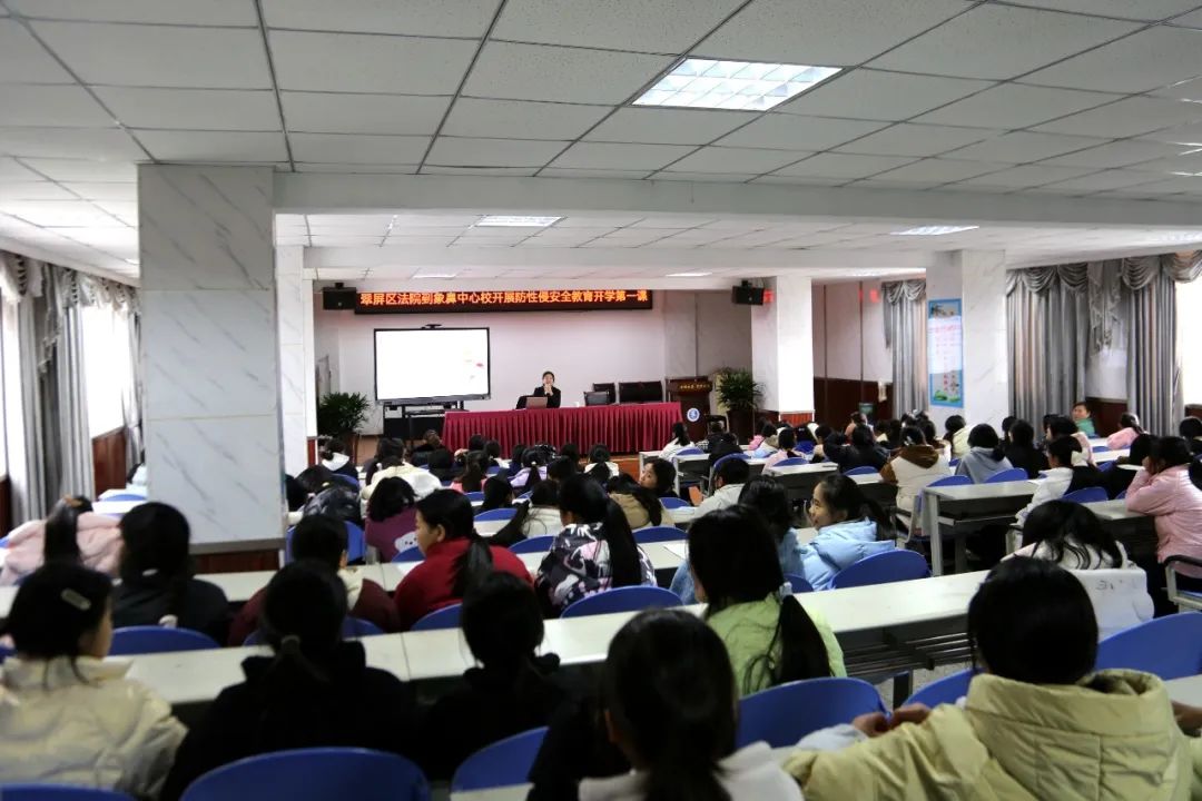 2月26日,新学期开学第一天,翠屏区法院刑事审判庭干警一行来到宜宾市翠屏区象鼻中心学校开展法治宣传教育活动,通过法治讲座、法律咨询、赠送法律资料等方式,为该校教师和初一、初二年级200余名女学生送上“法治大礼包”。