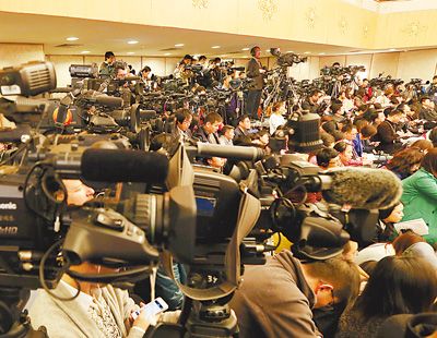 中外记者在人大新闻发布会上。田 贺摄(人民视觉)
