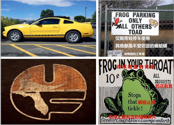 我们会根据动物与其他动物的相关性或相似性来给它们命名:犀甲虫、马蝇、蟹蛛、猫鱼、鹦嘴鱼、虎螈、牛蛙、鼠蛇、斑马雀、袋鼠鼠和骡鹿。我们用动物的名称给植物起名:蜘蛛草、蟾蜍亚麻、蛇根马兜铃、野牛草、蜥蜴尾、猫尾、马尾草。我们以动物的名字为城镇和地貌命名:澳大利亚的蝎子疫(Scorpion Blight)、尼加拉瓜 的蚊子群礁(Mosquito Cays)、宾夕法尼亚州的奔跑鳟鱼(Trout Run)、佐治亚州的蛙叫溪、加利福尼亚州的蜥蜴峡谷、佛罗里达州的鳄鱼巷、怀俄明州的响尾蛇山、蒙大拿州的麋鹿城、亚拉巴马州的猪眼、科罗拉多州的兔子耳朵山口、肯塔基州的猴子眉毛。