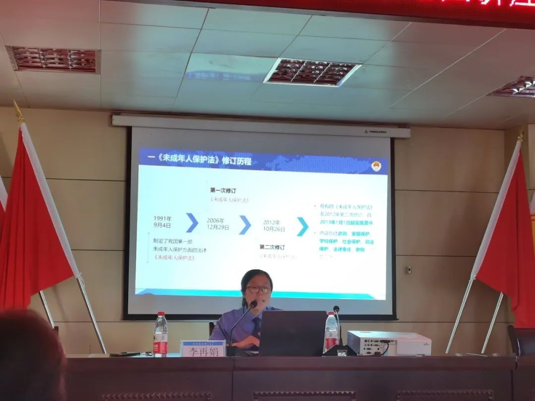 随后,市妇女儿童维权律师志愿服务队成员雷绪琴通过以案释法形式向大家解读了《妇女权益保障法》、《反家庭暴力法》相关知识。市人民检察院第一检察部副主任李再娟从《未成年人保护法》修订历程、未成年人的权力、未成年人保护工作原则及具体措施等方面详细解读了《未成年人保护法》。