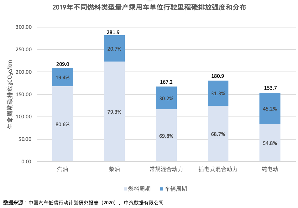 说回到电动汽车在燃料周期的碳排放,即燃料的生产排放和燃料的使用排放两个阶段。虽然相比其他车种,电动汽车在燃料周期的排放有一些优势,但距离真正的低碳化还有很大的进步空间。