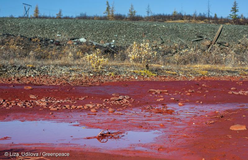 俄罗斯的Daldykan河被镍工厂排放的化学物质染成了鲜红色。 © Liza Udilova / Greenpeace