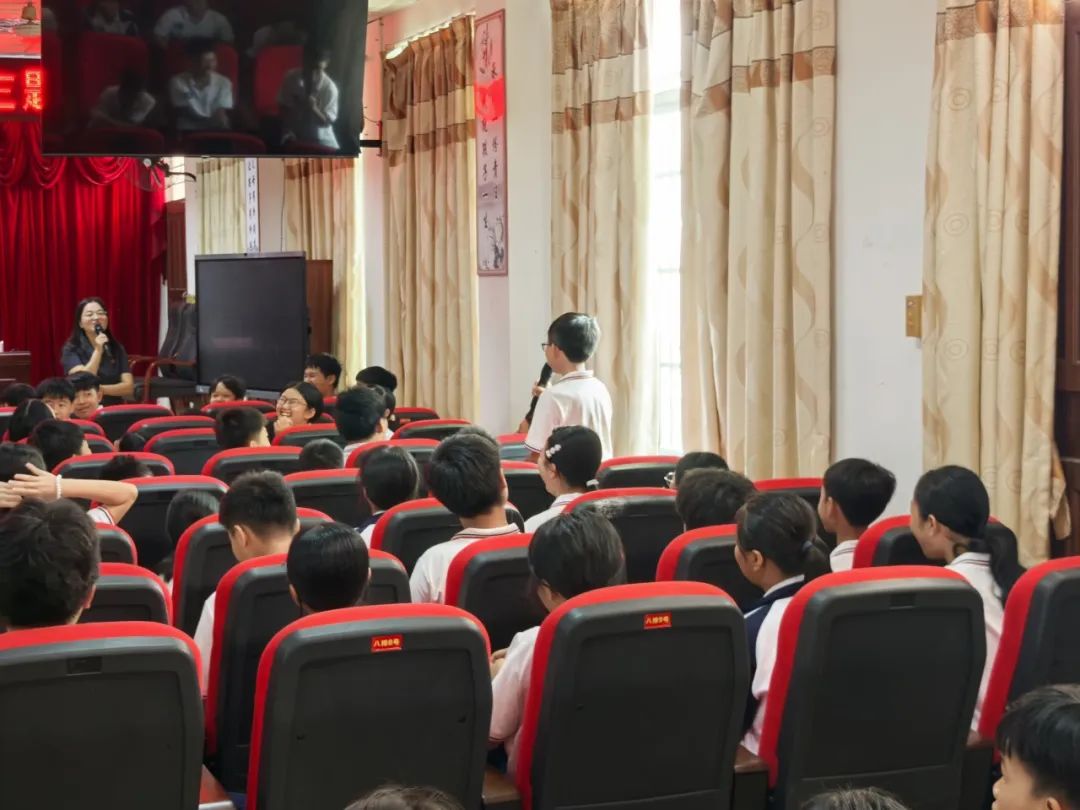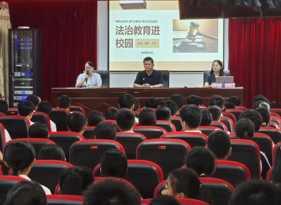 文昌市人民法院会文法庭陈雨晴法官通过法律知识讲解、案例展示以及互动问答等环节,给同学们带来一堂别开生面的法律课,帮助学生们更好地理解了法律的重要性和实用性,教会学生们运用法律武器保护自己的合法权益,引导学生们树立正确的价值观和人生观,成为遵纪守法、积极向上的新时代好少年。