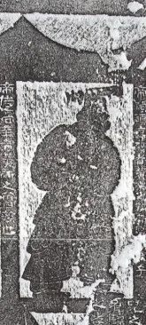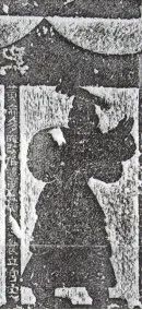 画面上的颛顼,面向右转,服饰上衣下裙,和黄帝一样,只是没有遮膝的“芾”。其右臂平举,手未露出,左手被遮,像拱起双手的样子。左侧隔栏的题榜隶书15字:“帝颛顼高阳者,黄帝之孙而昌意之子。