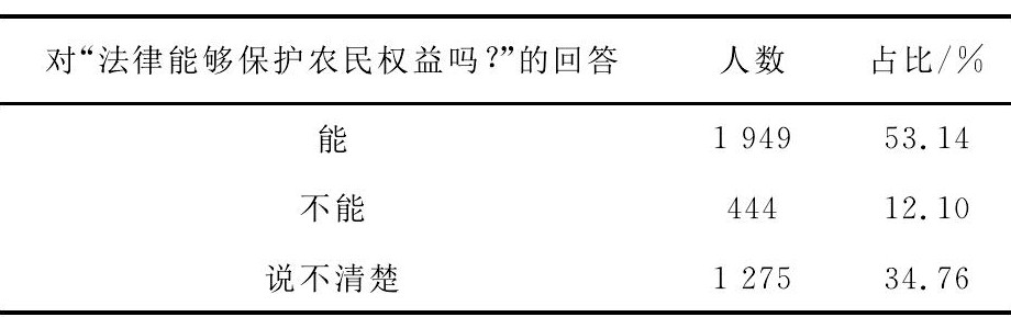 表3农民权益的法律保障调查结果