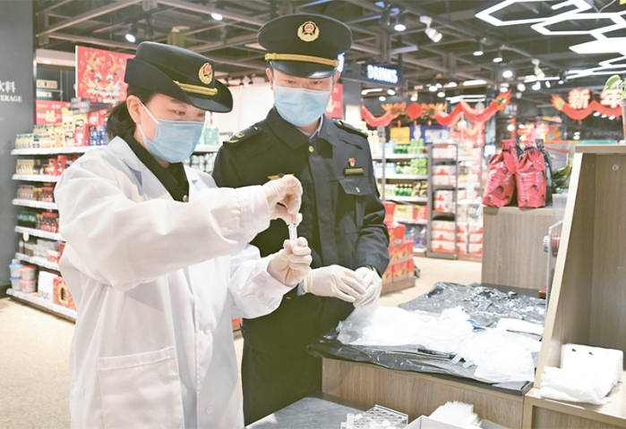 中国式现代化,民生为大。市场监管领域必须强化以人民为中心的发展思想,守牢安全底线,切实保障人民群众生命财产安全。图为2024年2月20日,北京市海淀区市场监督管理局工作人员对一家超市的在售元宵进行快检。 新华社记者 任超/摄