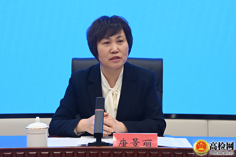 3月1日,全国人大代表、河北省沧州市第十六中学党支部书记、校长唐景丽在“加强综合司法保护 守护未成年人健康成长”新闻发布会。   高检网 图