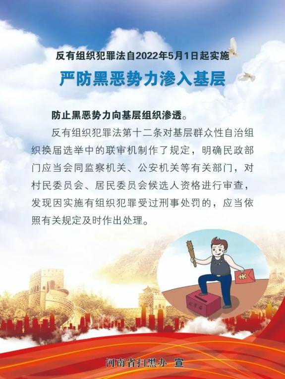 针对黑社会性质组织犯罪为代表的有组织犯罪向基层政权渗透的问题,扫黑除恶的重点工作之一就是防止涉黑涉恶人员进入村(居)民委员会队伍,严厉打击黑恶势力干扰破坏、控制基层自治委员会选举。本法充分吸取扫黑除恶专项斗争的实践经验,就村(居)民委员会成员候选人资格审查作出专门规定,防止涉有组织犯罪人员染指基层政权。