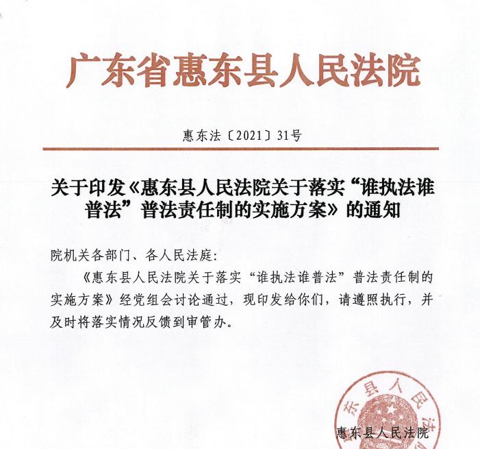 原标题:《谁执法谁普法|惠东县人民法院:同沐法治阳光,共建法治惠东》