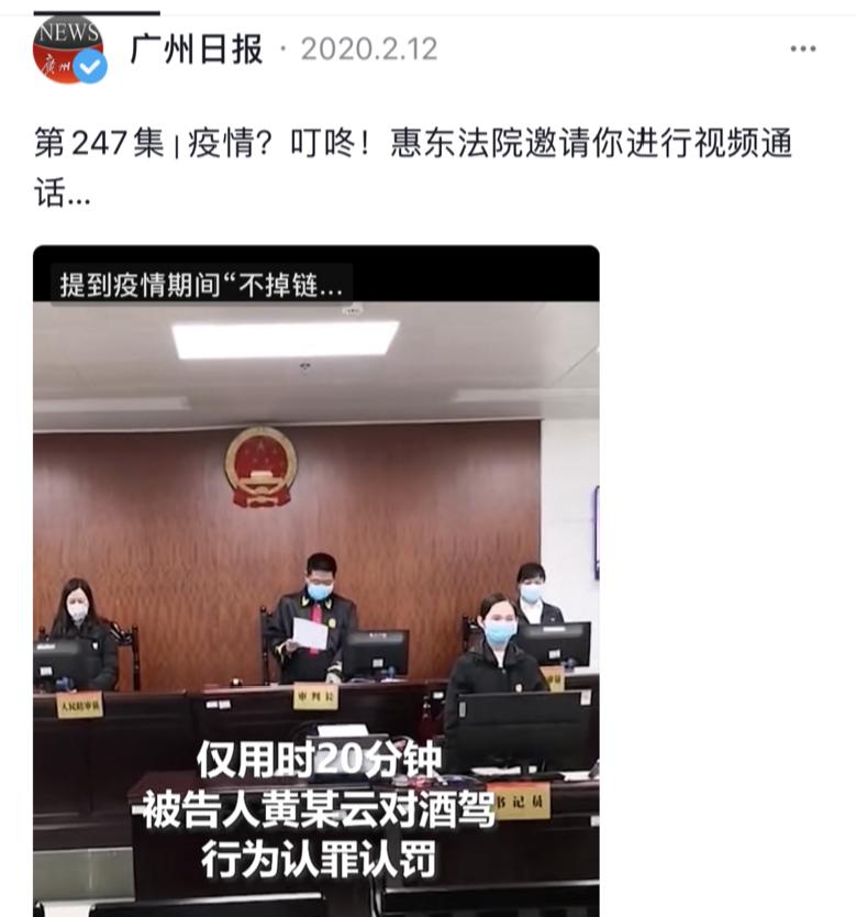 面对突如其来的新冠肺炎疫情,我院立足司法办案主业,守好疫情防控法治宣传主阵地,2020年,我院实现全市法院首例微信网络视频、首例连线看守所开庭、首例当庭宣判虚假售卖口罩刑事案件,刑事审判庭受到省法院通报表彰。邀请惠州电视台、惠东电视台以及各大主流媒体作专题报道,通过《广州日报》抖音平台发布的《疫情期间“不掉链子” 惠州首次通过微信视频“隔空”审刑犯》一文,点赞接近2万次,有力震慑潜在违法犯罪分子,实现政治效果、法律效果和社会效果相统一的良好效果。