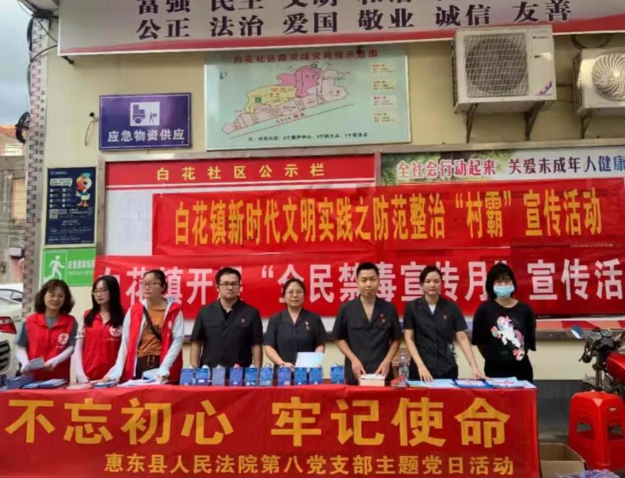 我院制定出台《惠东县人民法院“八五”普法工作规划(2021-2025年)》和年度普法计划,围绕中心、大局,结合禁毒整治、扫黑除恶、未成年人审判、疫情防控等重点专项工作进行普法,提高群众认识,努力推动平安法治惠东建设。