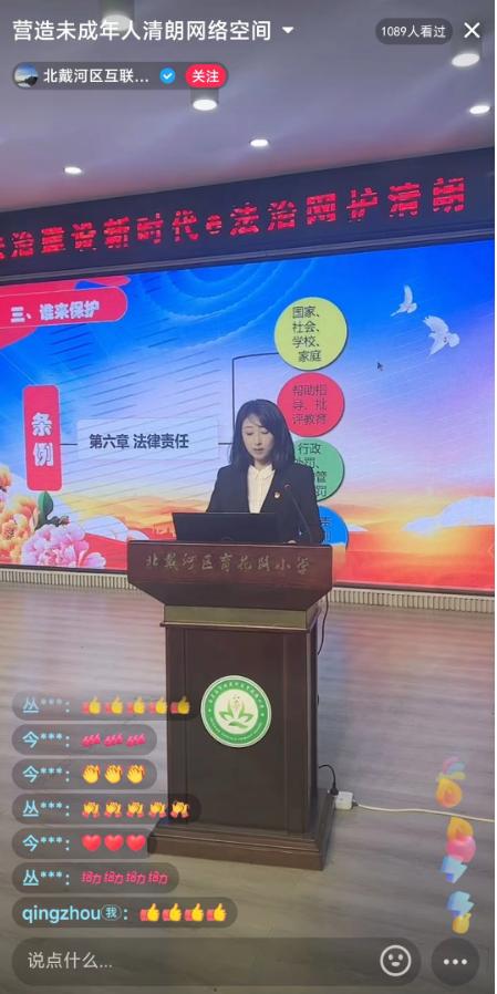 为了加强未成年人的法治教育,强化未成年人学法、知法、守法、用法意识,保障未成年人合法权益。近日,北戴河区委网信办邀请秦皇岛市网络普法公益讲师团杨倩倩老师走进直播间开展《未成年人网络保护条例》专题网络直播活动。