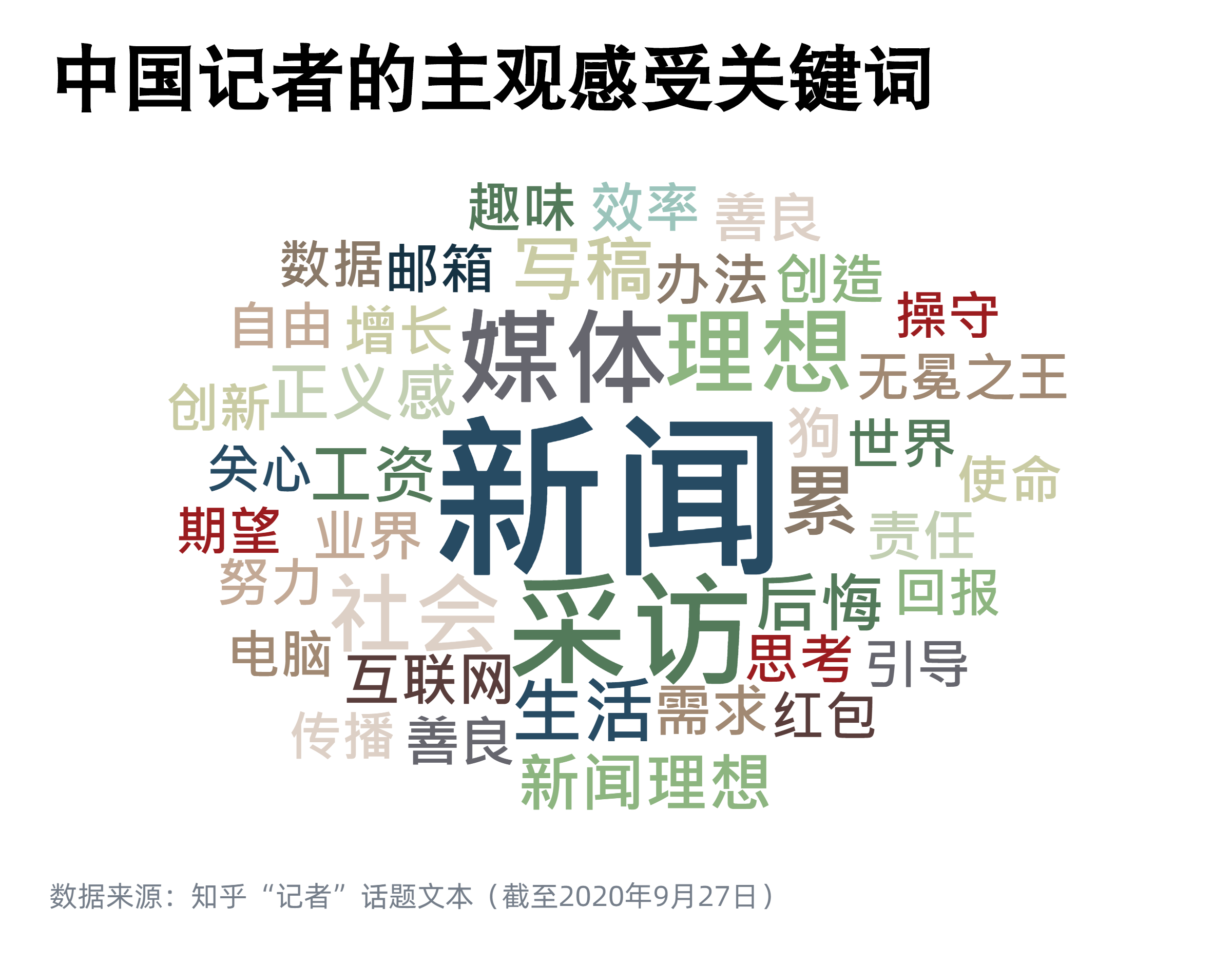 不过,虽然高频词中没有“不后悔”,但还有“理想”、“新闻理想”和“正义感”。同时,“但是”、“其实”的反复出现也证明,记者谈到这个问题时内心五味杂陈。“也曾恐慌过,也正在恐慌着,但现在的我还是不留退路地从事对口的工作。”一位党报记者如是说道。