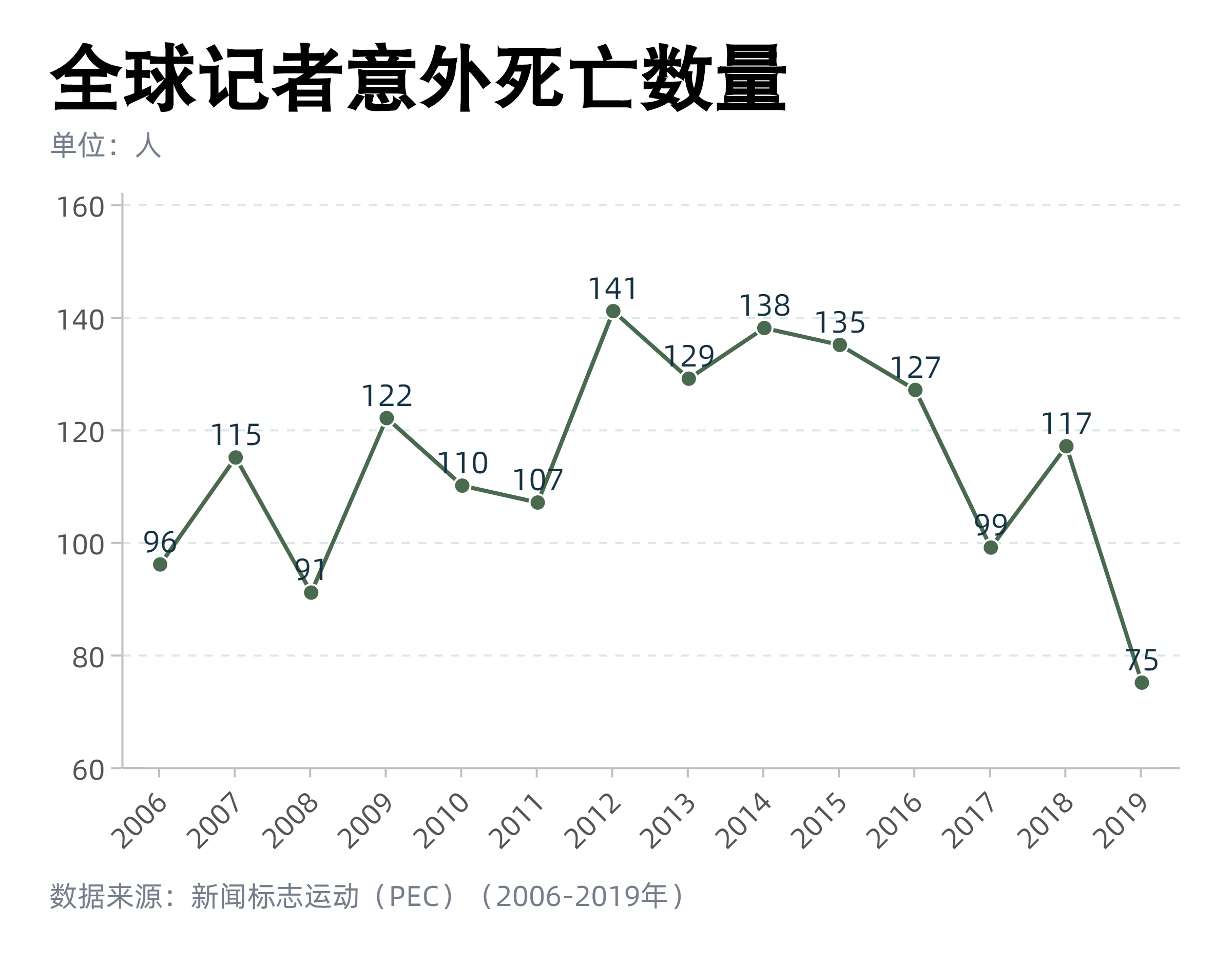 记者的意外死亡事故多发于动乱国家/地区。截至2020年10月28日,本年度全世界至少有62名媒体工作者被杀害。他们始终秉持一个信念——如果没法阻止危难,那就把危难的真相告诉世界。