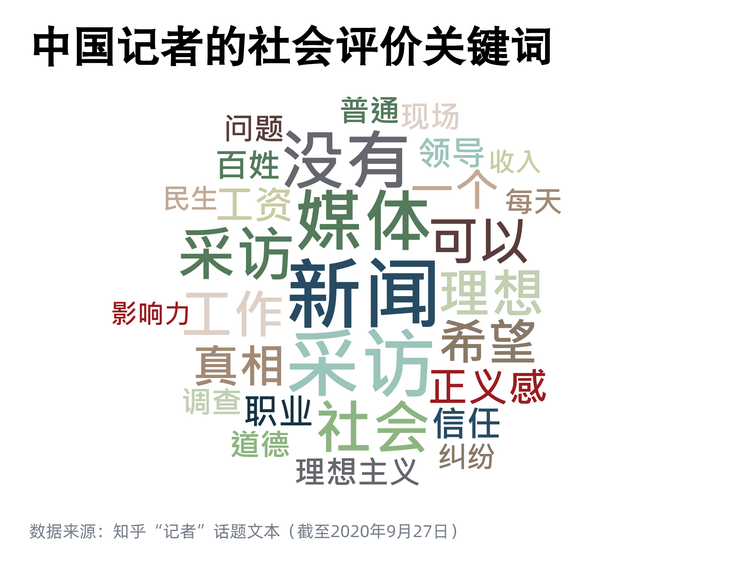 在公众眼中,记者这个职业往往与“理想”、“真相”、“正义感”、“理想主义”挂钩。另外,“希望”、“信任”的高频出现与上文公众对媒体信任度上升相互印证,表明媒体与公众的关系正在变好。