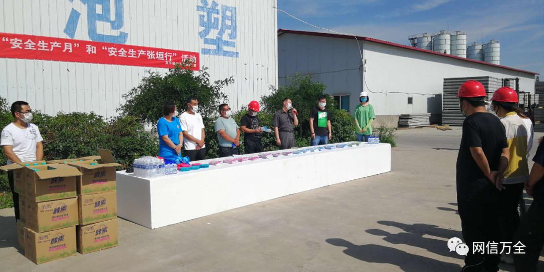 为进一步增强企业与一线工人安全生产意识,提高工人自我保护能力,有效预防和减少工作中安全生产事故的发生,6月16日上午,宣平堡乡人民政府走进企业厂区,联合张家口广兴泡沫有限公司与张家口天信彩钢钢构有限公司,开展了第19个全国“安全生产月”和“安全生产张垣行”活动。活动主题为“消除事故隐患,筑牢安全防线”,参加活动人员达100余人。