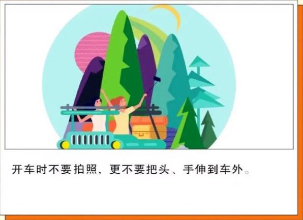 外出自驾游玩,要预先掌握出行线路的交通、天气状况,合理安排行程,切勿急于超速行驶、疲劳驾驶、强超强会、超员载客、酒后驾车。