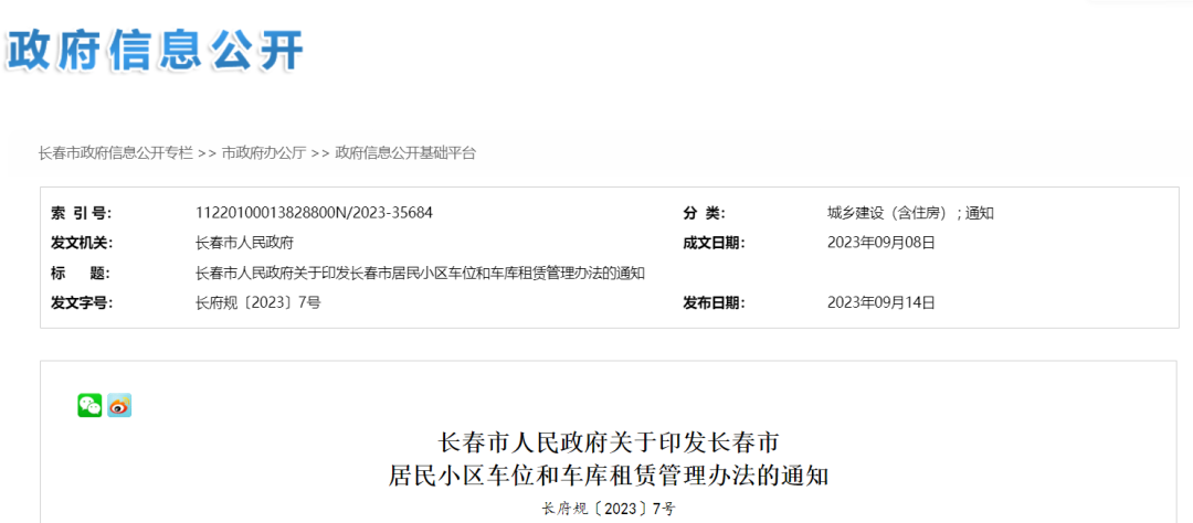 14日,长春市人民政府网站发布《长春市居民小区车位和车库租赁管理办法》。
