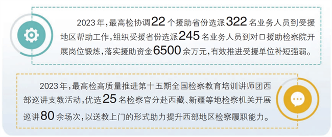 最高检坚持全国检察援助“一盘棋”,紧密结合检察工作实际,持续推进检察业务、业务骨干、教育培训、检察文化、信息科技、资金项目“六位一体”的检察援助。