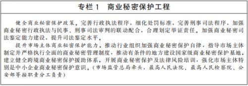 健全知识产权法律法规。开展知识产权基础性法律研究。统筹推进专利法、商标法、著作权法、反垄断法、科学技术进步法、电子商务法等相关法律法规的修改完善。加强地理标志、商业秘密等领域立法,出台商业秘密保护规定。完善集成电路布图设计法规。推进修订植物新品种保护条例。制定中医药传统知识保护条例。完善与国防建设相衔接的知识产权法律制度。全面建立并实施知识产权侵权惩罚性赔偿制度,加大损害赔偿力度。研究建立健全符合知识产权审判规律的特别程序法律制度。适应科技进步和经济社会发展需要,依法及时推动知识产权法律法规立改废释。(中央宣传部、最高人民法院、最高人民检察院、科技部、工业和信息化部、司法部、农业农村部、商务部、国家卫生健康委、市场监管总局、国家国防科工局、国家林草局、国家中医药局、国家知识产权局、中央军委装备发展部等按职责分工负责)