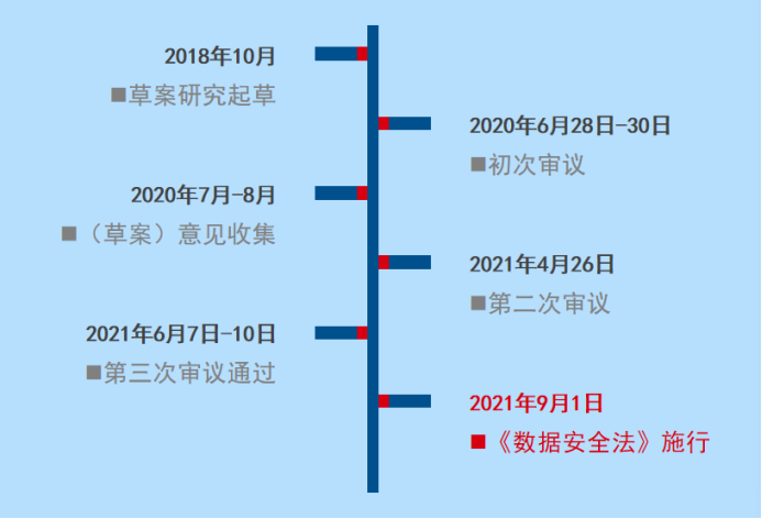 2021年6月10日,第十三届全国人民代表大会常务委员会第二十九次会议通过《中华人民共和国数据安全法》,自2021年9月1日起施行。