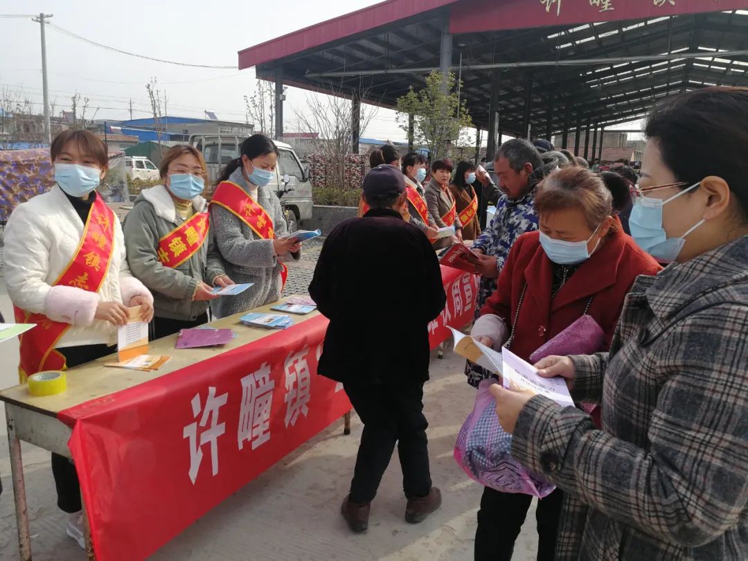 3月5日上午,许疃镇妇联组织巾帼志愿者在农贸市场开展三八妇女维权法律知识宣传。