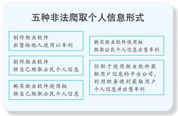 笔者梳理了目前存在的5种利用爬虫技术非法爬取公民个人信息形式,包括制作爬虫软件出售给他人使用以牟利;制作爬虫软件供自己爬取公民个人信息;购买爬虫软件使用权供自己爬取公民个人信息;购买爬虫软件使用权爬取公民个人信息出售牟利;任职于使用爬虫软件获取用户信息的平台公司,利用职务便利获取用户个人信息并出售牟利。