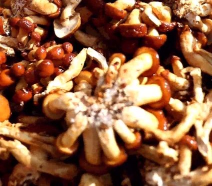 堆积起来的生菌木材冒着热气儿,菌种生产厂房里机器轰鸣,滑子菇大棚里农民忙着收“金疙瘩”。