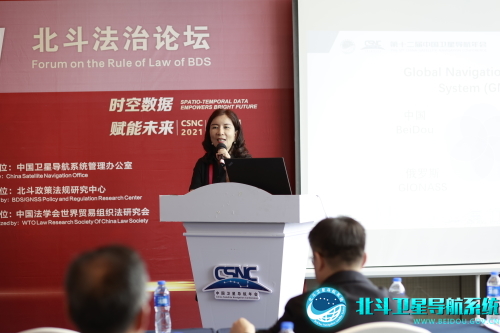 中国人民大学杰出学者计划特聘教授、中国法学会世界贸易组织法研究会副会长兼秘书长石静霞作《WTO框架下的卫星导航法律规制》特邀报告,石静霞教授表示,作为多边贸易体制的坚定维护者和支持者,我国支持北斗国际化活动与我国所承诺的WTO义务相一致。本报告考察WTO框架下与卫星导航服务相关的协定和规则,包括《服务贸易总协定》《政府采购协定》等,同时关注主要WTO成员对北斗国际化的关注,分析我国的相关应对。