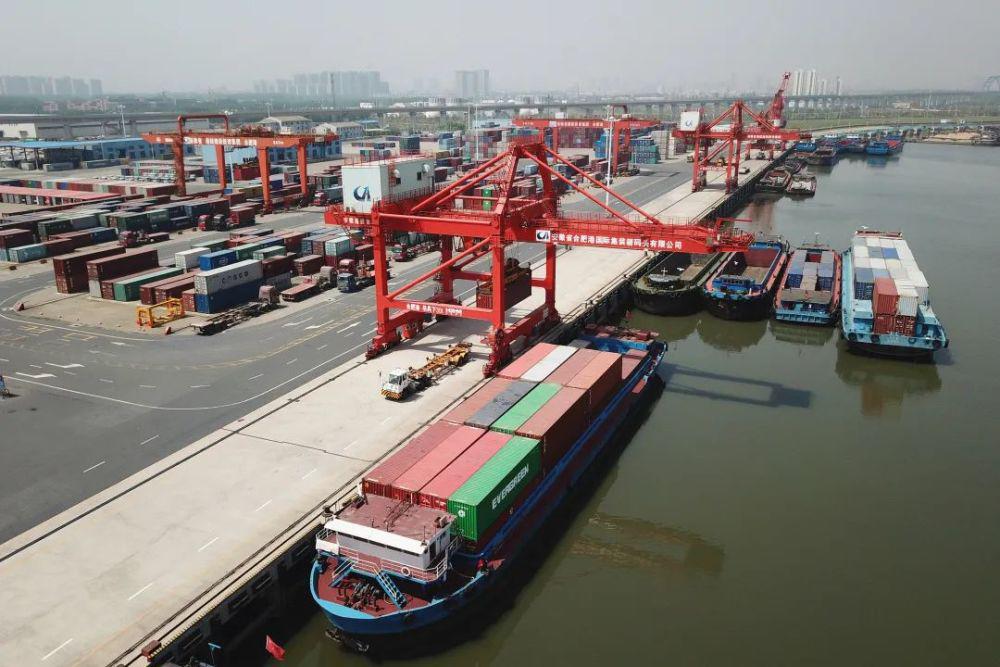 日前,一艘满载粮食、麦芽、马口铁、建材的集装箱船从江苏淮安新港驶出,经京杭运河进入长江驶向湖北武汉阳逻港国际集装箱码头,淮安武汉水上集装箱快速班轮航线正式开通。