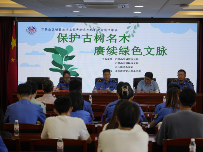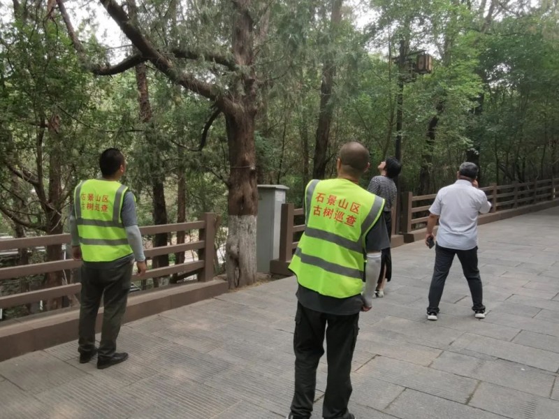 石景山区共计古树名木1545株,其中一级古树141株,二级古树1404株。为实现对古树名木的精准保护,石景山区实施“四大”硬措施。一是完善古树名木地理信息系统,建立“电子户口”。建立古树名木的科属种、学名、树龄、树高、冠幅、胸围,植株长势以及生长环境、养护责任人、生存现状等基础资料数字化电子档案,建立“电子户口”,对古树名木资源信息进行动态监管,实现信息化、精准化管理。二是组织开展健康体检。通过基础体检与精细体检相结合的方式,全面掌握分析古树生长环境和生长状况,为每株古树制定专属“体检报告”,夯实全区古树名木管护基础,为开展古树名木日常养护及保护性复壮工作提供科学依据。三是科学开展保护修复。科学开展古树名木修复工作,以“一树一策”实施古树保护性复壮,量身定制复壮方案并及时跟进系列“抢救”措施,有步骤、有计划地开展复壮工作。四是开展联合执法。区林长制办公室与区森林公安分局、公园景区、文保单位等多个部门建立了联络监督检查机制,多次联合开展打击破坏古树名木违法行为专项整治行动,扎实推进信息共享、联合检查、案件会商、移送等工作,实现行政执法与刑事司法、公益诉讼有效衔接,形成监管执法合力。