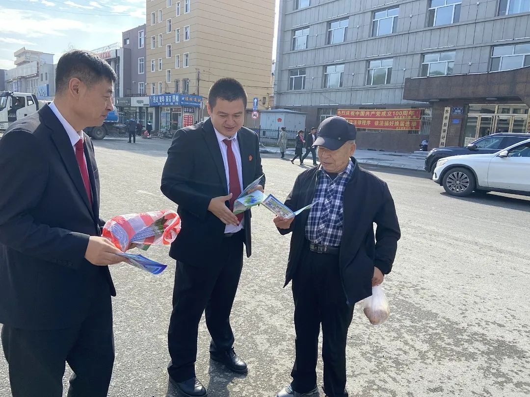 9月26日,辽源市中级人民法院、东辽县人民法院来到东辽县渭津镇,联合开展宣传活动。干警们悬挂横幅、摆放宣传展板、设立咨询台,向来往群众发放民法典传单、生态保护资料,现场为群众提供相关法律咨询,积极宣传生态环保法律法规、绿色低碳生活知识,倡导群众自觉践行文明、节约、绿色、低碳的生活和消费方式,树立绿色低碳的生活理念,形成崇尚节约、绿色低碳的社会风尚。随后,法官干警们来到渭津镇大榆村调解室召开座谈会,向村民宣讲设立“吉林生态日”的重要意义,现场解答村民提出的相关法律问题,并实地查看了该村的黑土地保护情况。