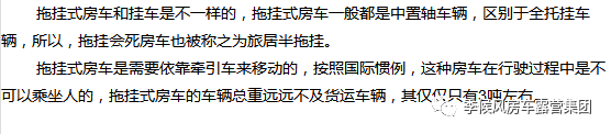 拖挂式房车一般为中置轴车辆,不同于全挂车辆的特征,属于半挂车,法律规定全挂车是不可以上高速的,小型载客汽车只允许牵引旅居挂车或者总质量700千克以下的挂车,挂车不得载人”