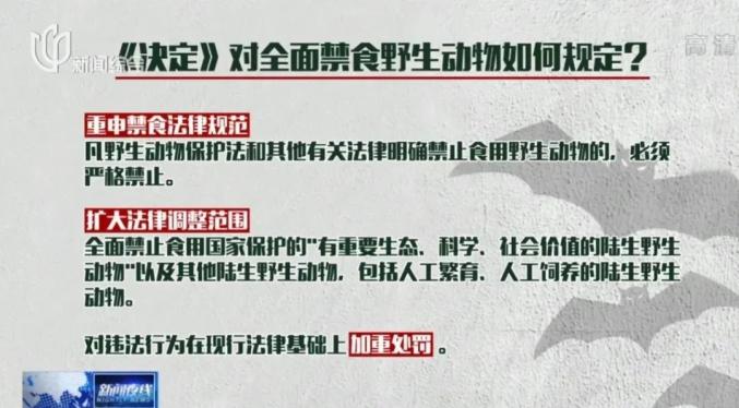决定规定严厉惩治非法食用、交易野生动物的行为,对违反野生动物保护法和其他有关法律规定,猎捕、交易、运输、食用野生动物的,在现行法律规定基础上加重处罚。