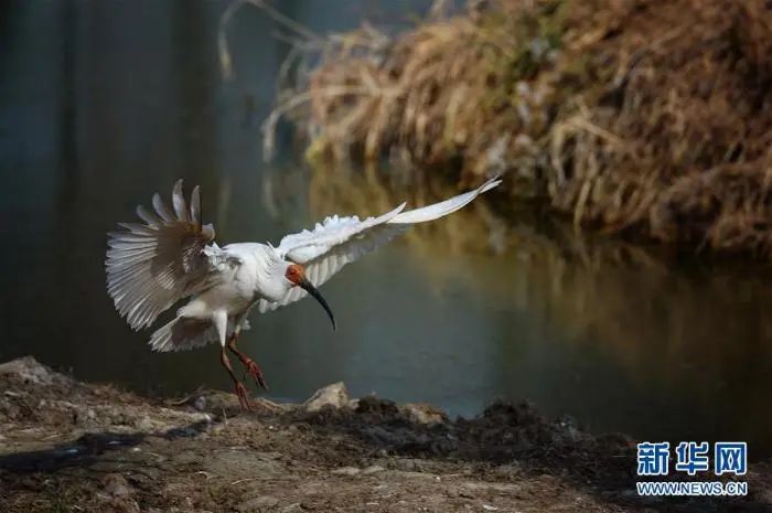 洋县朱鹮生态园内的朱鹮(2018年1月19日摄) 新华社记者 刘潇摄