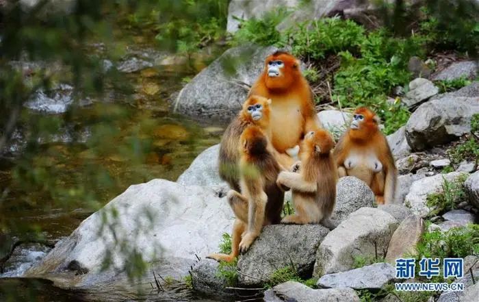 陕西佛坪县熊猫谷内拍摄的秦岭金丝猴(2018年8月3日摄) 新华社记者 刘潇摄