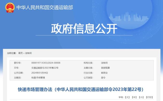 《快递市场管理办法》已于2023年12月8日经第28次部务会议通过,现予公布,自2024年3月1日起施行。
