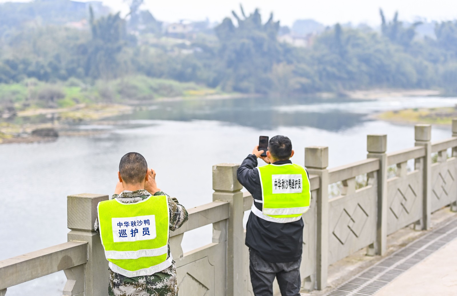 “爷爷您看,这是国家一级保护动物中华秋沙鸭,现在有一些就生活在咱们綦河,去河边的时候要注意保护好它们……”3月1日,在江津区西湖镇,青年志愿者正在向市民宣传保护野生动物知识,增强市民野生动植物保护意识,构建人与自然和谐共生的美好家园。