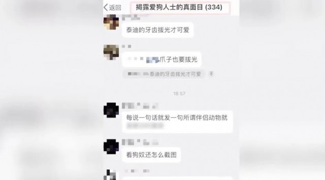 名为“揭露爱狗人士的真面目”的聊天群。图片来源:澎湃新闻