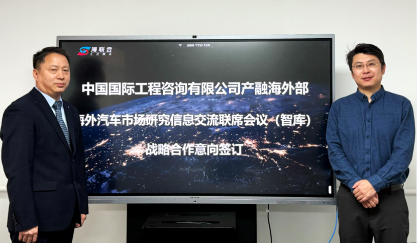 近日,海外汽车市场研究信息交流联席会议(智库)秘书处单位拜访了中咨产融(北京)科技有限公司,双方明确了战略合作意向,并就助力中国汽车企业全球化发展事宜进行了深入的沟通与交流。