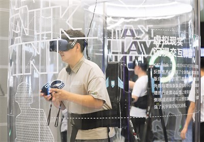 在位于江苏苏州昆山市的昆山元宇宙产业园元宇宙展示厅,参观者在体验VR游戏。