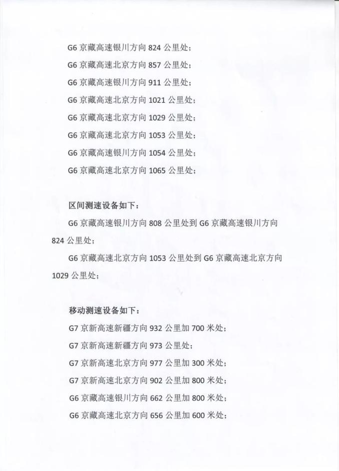 为进一步维护支队辖区高速公路通行秩序,加大超速违法行为的整治力度,预防和减少道路交通事故的发生,促进广大车辆驾驶人安全文明出行,自2019年9月15日起,按照内蒙古公安厅交通管理局高速公路三支队的统一部署,将对以下路段启用固定、区间、移动测速设备,对超速行驶的道路交通违法行为进行抓拍取证。